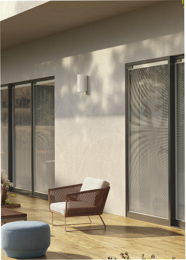 Le tende motorizzate all’interno della vetrata isolante sono azionate da un motore interno alimentato dall’impianto elettrico e possono essere controllate grazie a pulsanti a parete, telecomando, app, assistenti vocali e impianti domotici. L’assenza di sistemi di comando su vetro o profilo esalta la bellezza del serramento per un effetto dal design minimal.